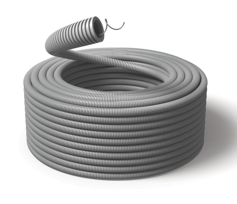 Tub flexibil din polietilenă de înaltă densitate (HDPE), de culoare gri, cu diametru exterior de 25 mm și lungime de 50 metri. Este ignifug și prevăzut cu fir de tragere, oferind protecție mecanică și termică cablurilor electrice în instalații rezidențiale, comerciale sau industriale.