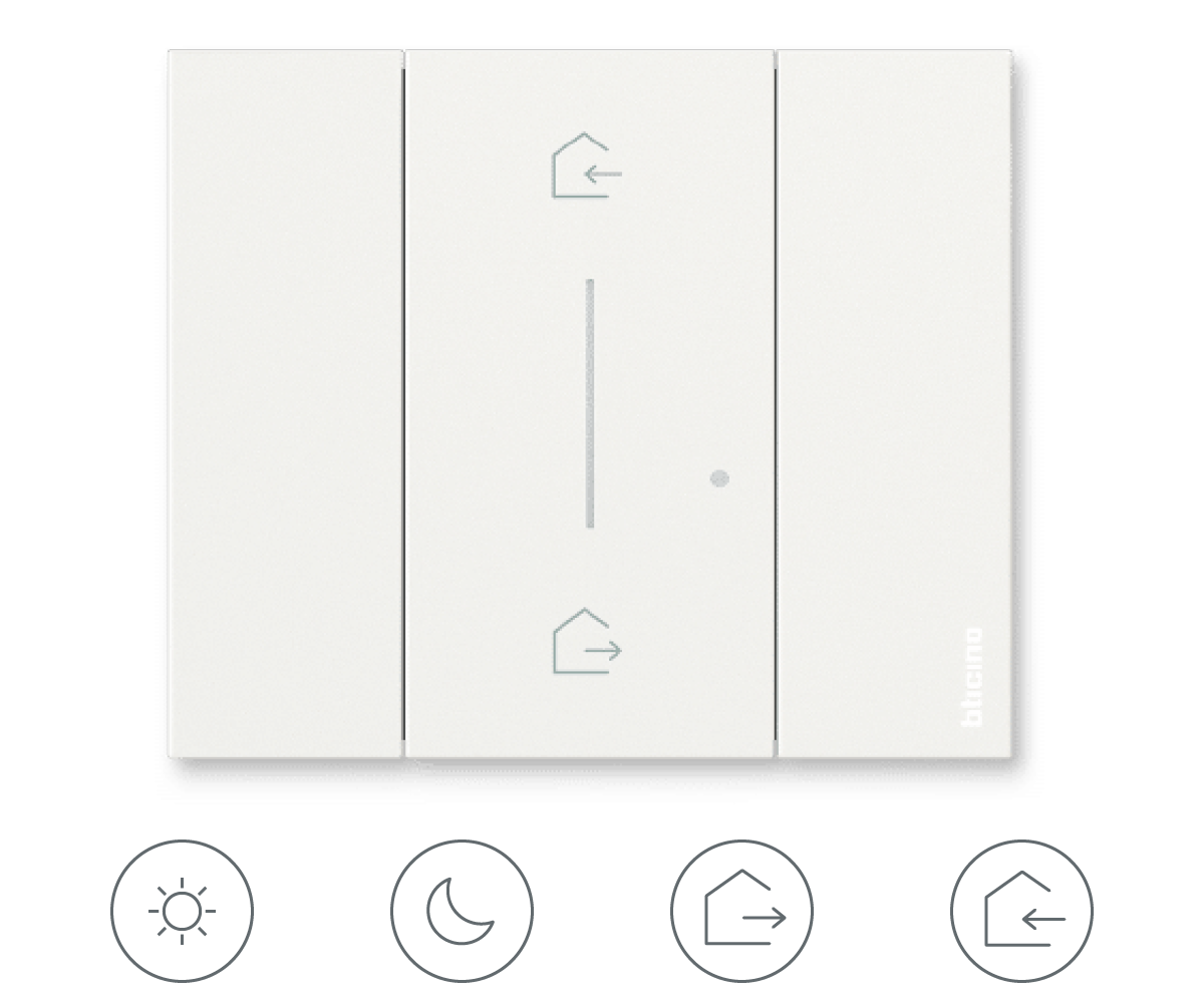 Întrerupătorul conectat cu neutru și opțiune de dimmer de la Bticino permite controlul local sau de la distanță al iluminatului prin aplicația Home + Control sau prin comenzi vocale. Compatibil cu becuri tradiționale sau dimabile, inclusiv LED, suportă o putere maximă de 150W la 230V. Funcția de dimmer poate fi activată prin aplicație. Este echipat cu un indicator LED albastru pentru funcția de localizare, care poate fi activată din aplicație. Necesită conexiune la neutru și poate fi asociat cu unul sau mai multe comenzi wireless Living Now with Netatmo.